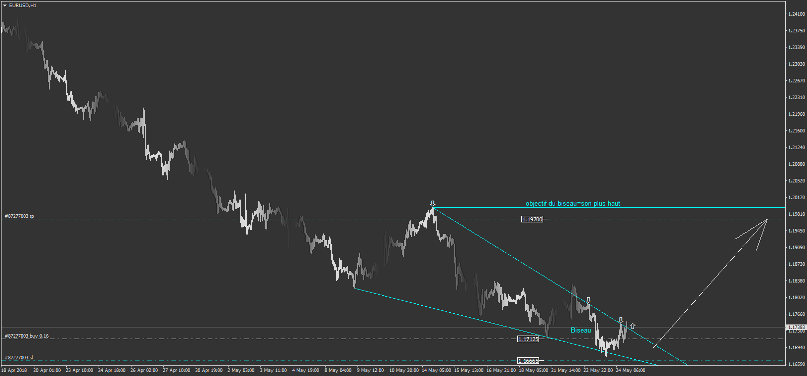donc l'objectif est le plus haut du biseau. mon objectif est à 1.19700