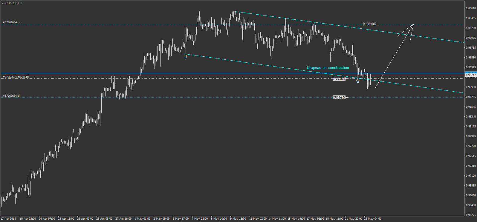 usdchf je décide d'acheter pour revenir casser un drapeau supposé à la hausse
