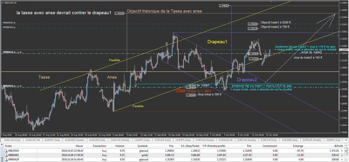 Sur le GBPUSD, j'ai déjà fais le breakeven, et je continue à juste attendre l'objectif ou le stop.
