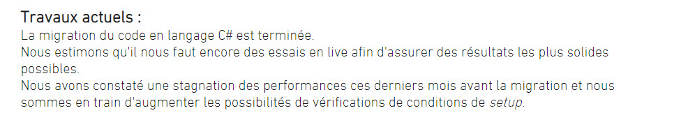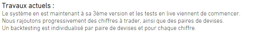 Mentionner deux systèmes qui ne fonctionnent pas c'est de l'anti marketing, lorsque vous savez qu'ils seront validés après au moins un an de trades live, autant les présenter à ce moment.