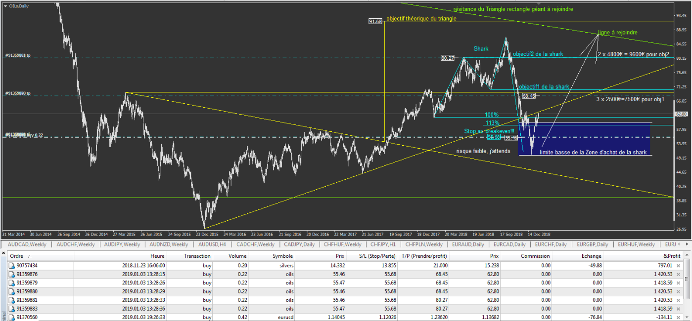 - L'OILs , toujours en cours avec le breakeven de fait pour ne plus rien risquer. J'ai 5X0.22 lots sur cette positions: