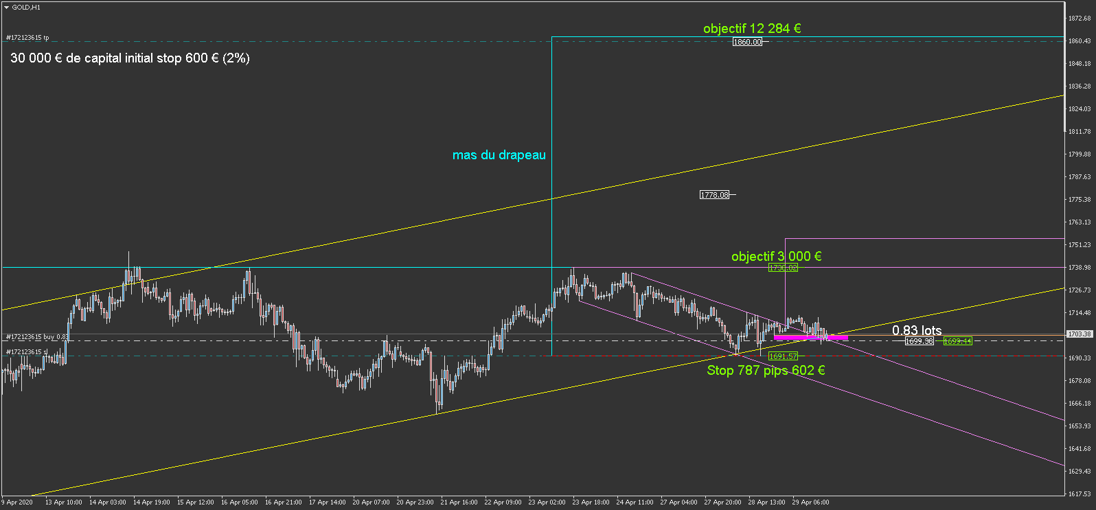j'ai aussi acheté le GOLD pour un objectif ambitieux sur un autre compte. Ne pas reproduire, c'est risqué , le stop n'est pas loin du tout