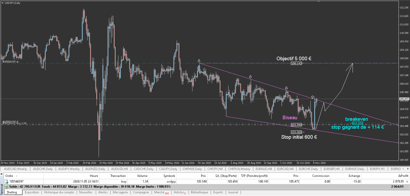Sur USDJPY, oui, mon breakeven à été touché à 115.46 mais avec le swap ca ne ma fait qu'un gain de 83.38 €.