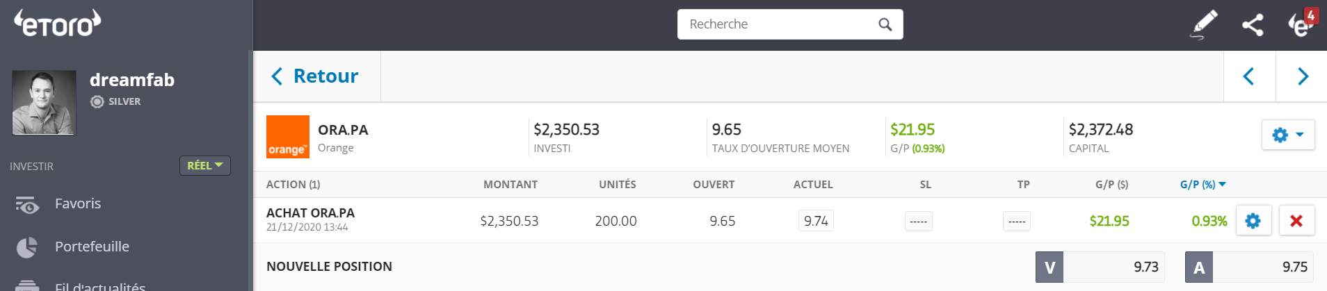 Là j'ai pris un peu d'action Orange que je trouve intéressante. Si ça se passe bien, je laisse courir, si ça se passe mal, je chercherai à diversifier mon risque en montant une stratégie optionnelle ou en montant une stratégie sur d'autres actifs.