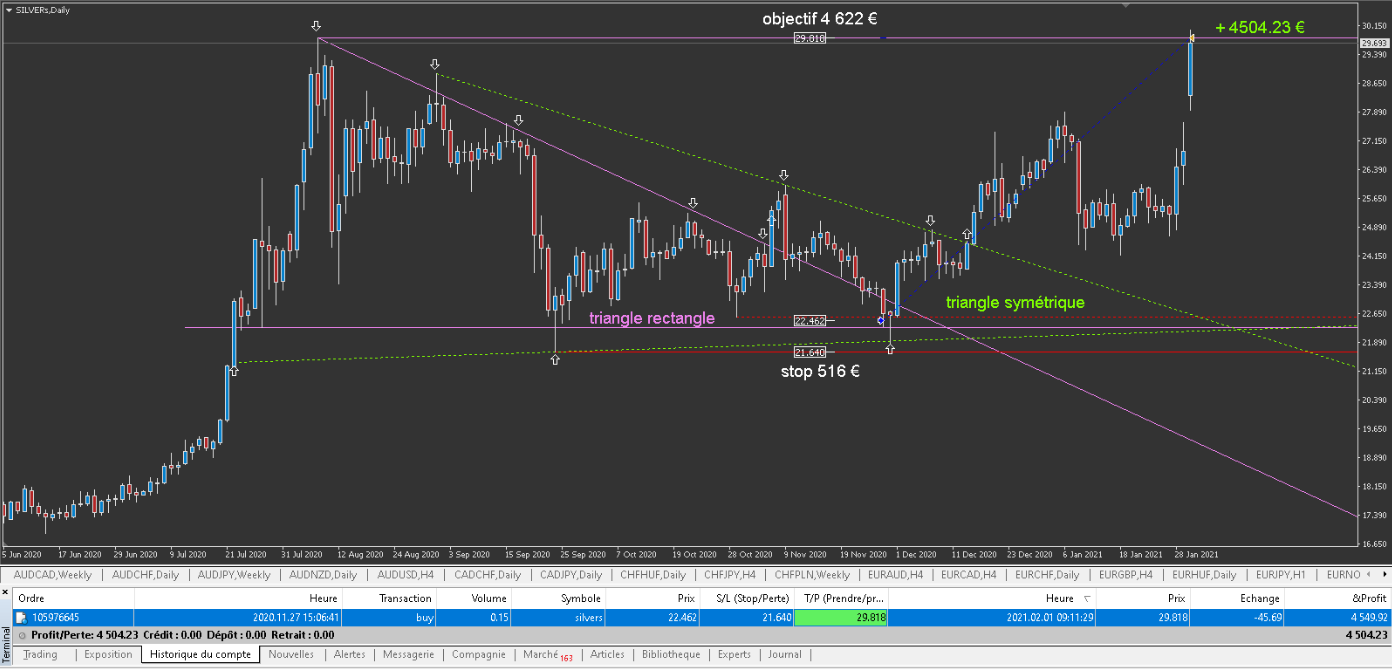 je viens de cloturer mon trade sur le SILVER en gain de + 4 944.50 €