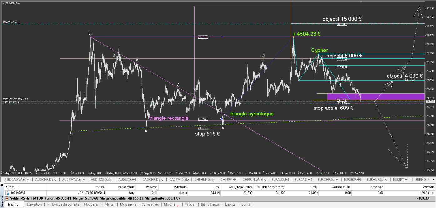 Mon trade sur le SILVER continue d'évoluer en positif pas loin des + 4 000 € à l'heure actuel.