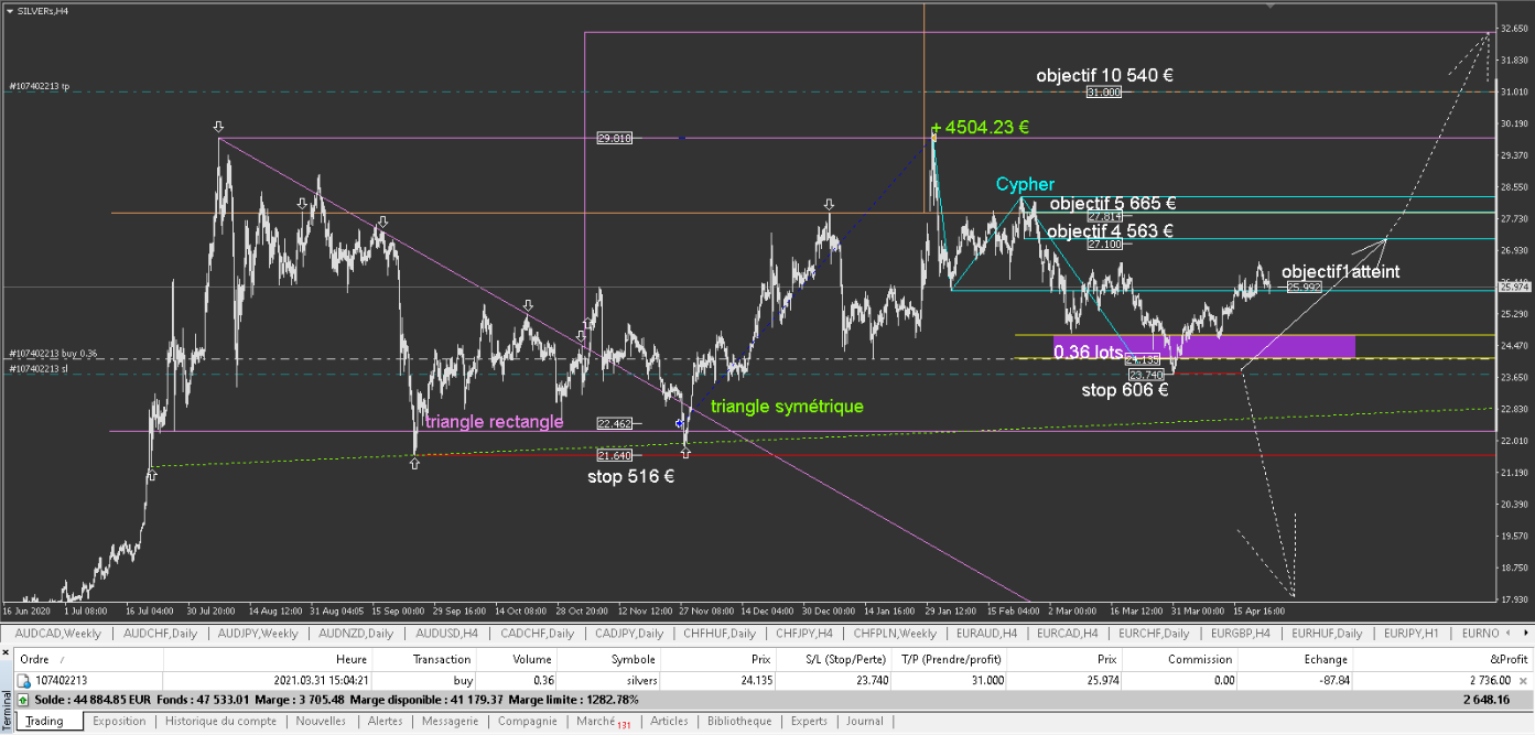 Entre temps, mon trade sur le SILVER a évolué. pour l'instant 2100 € en gain.