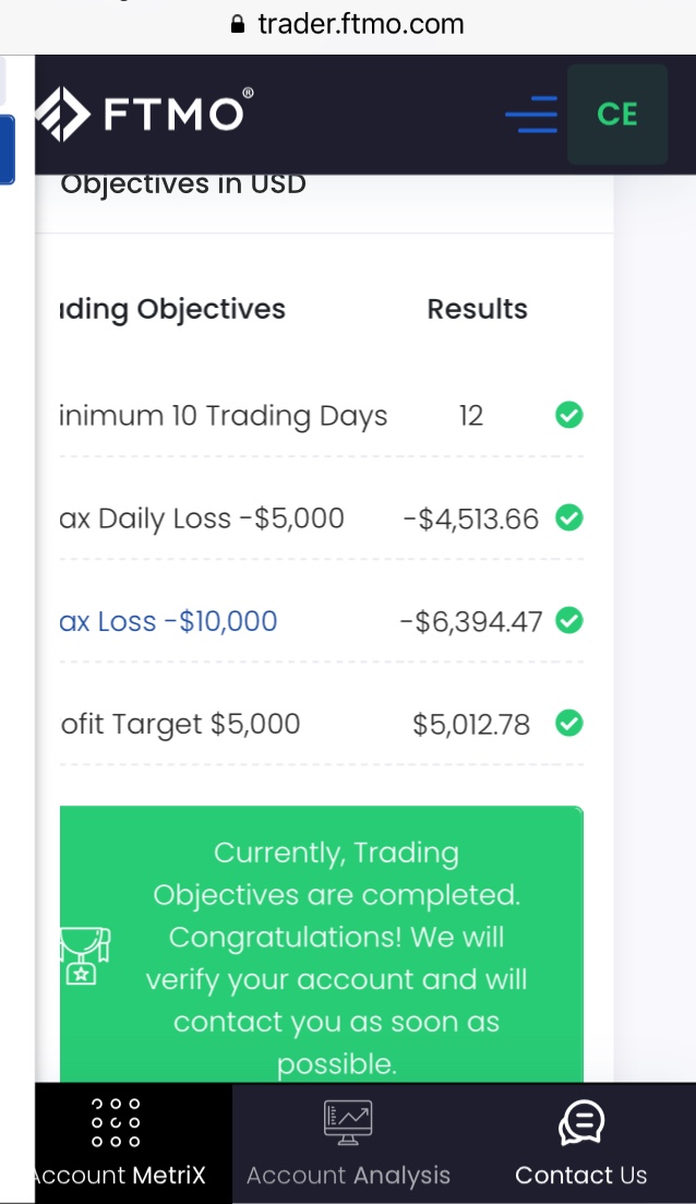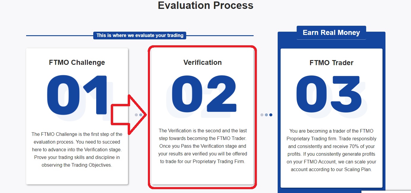Il faut aussi réussir la deuxième étape dite de la « Vérification », et ensuite faire un gain avec le compte live pour se faire rembourser.