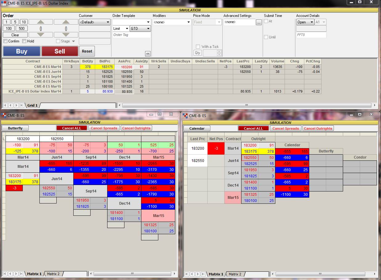 En bas, tu as visiblement une matrice d'un butterfly à gauche et d'un calendar à droite. Les informations comme 183200 sont certainement les Strikes et les chiffres en bleu et rouge les bid et ask des spreads ainsi que les quantités correspondantes.