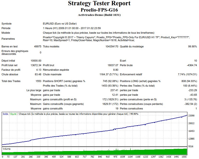Proelio est conçu pour fonctionner sur ActivTrades (mon broker) ou tout autres brokers présentant les mêmes caractéristiques. Par exemple, ça ne fonctionnera pas si votre broker à des caractéristiques particulières sur les niveaux de stop ou un spread EUR/USD trop fort etc.