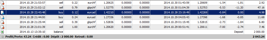 Le teste et réaliser entre le 28 et 29 s'est possible que chez FXCM il y a des commissions qui tombe le lendemain, je ne comprend pas tous sur le nombre de ligne Commission.
