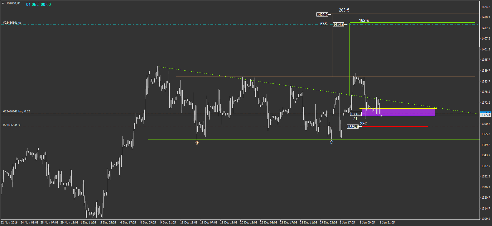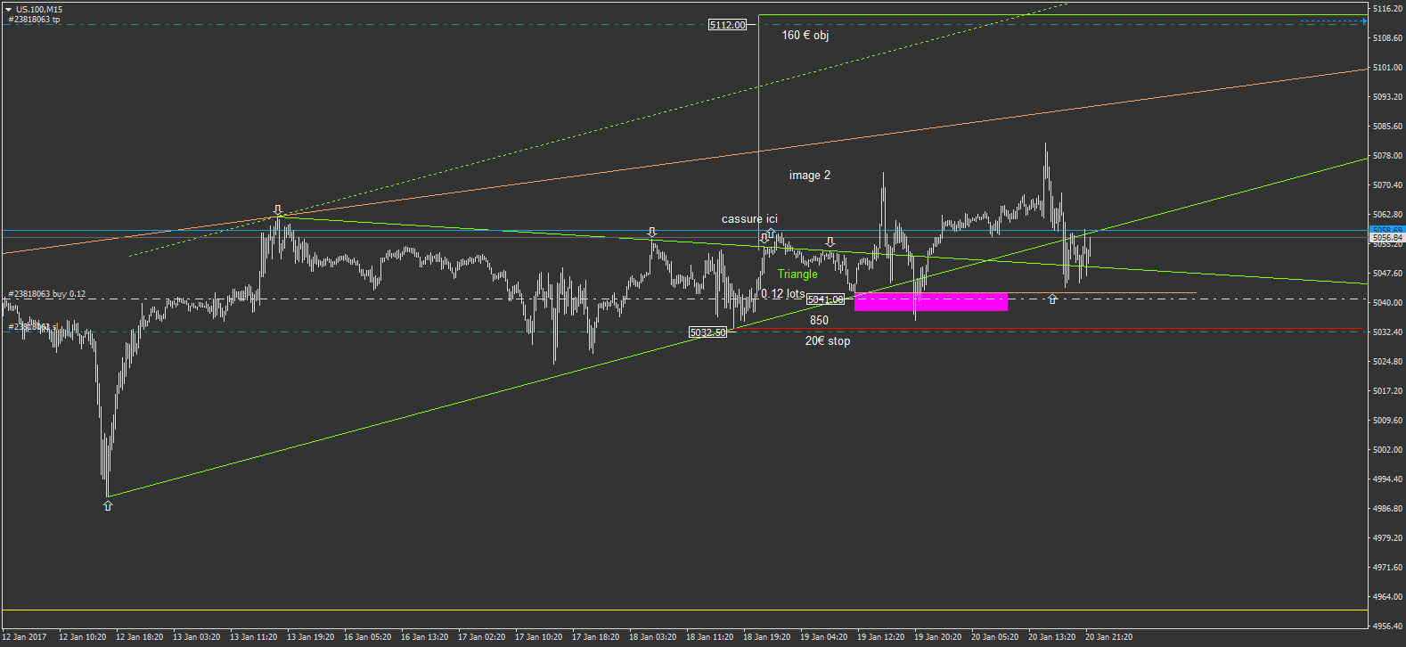 à ben tien, j'avais mis tout à l'heure un ordre différé sur le US.100 et ca a acheté entre temps. Je me demande comment ca va se passer avec l'investiture de Trump, ca peut bouger. mais enfin bref, moi je dois juste attendre de toute facon lol. le stop ou l'objectif. on va bien voir