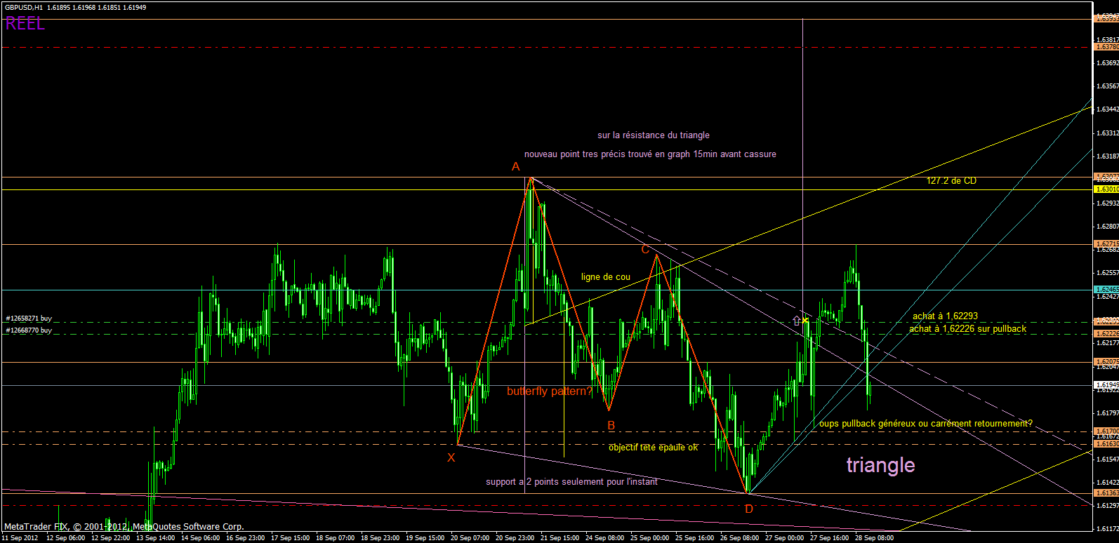 j'ai doublé ma position sur gbpusd pensant à un pullback. mauvaise idée! le pullback rentre bien dans le triangle(si c'est vraiment un pull back bien sur).