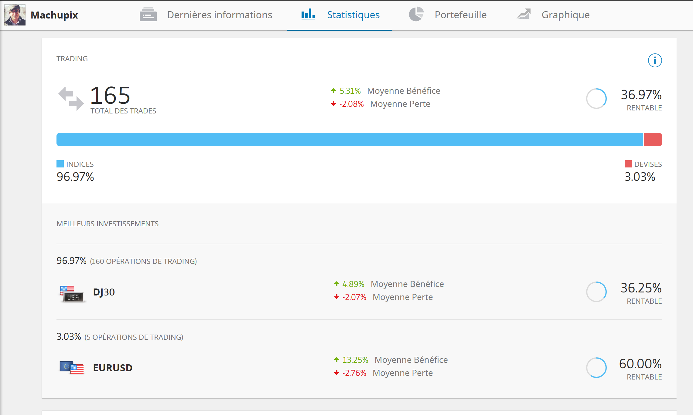 + de 20% de performance, un Max Drawdown de 3,5% avec seulement 40,63% opérations profitables