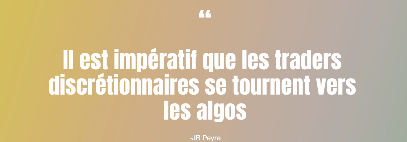 Jean-Baptiste commence par se présenter et revient rapidement sur son parcours professionnel personnel en évoquant notamment son apprentissage chez Citadel ainsi que son choix de se tourner vers le marché des futures.