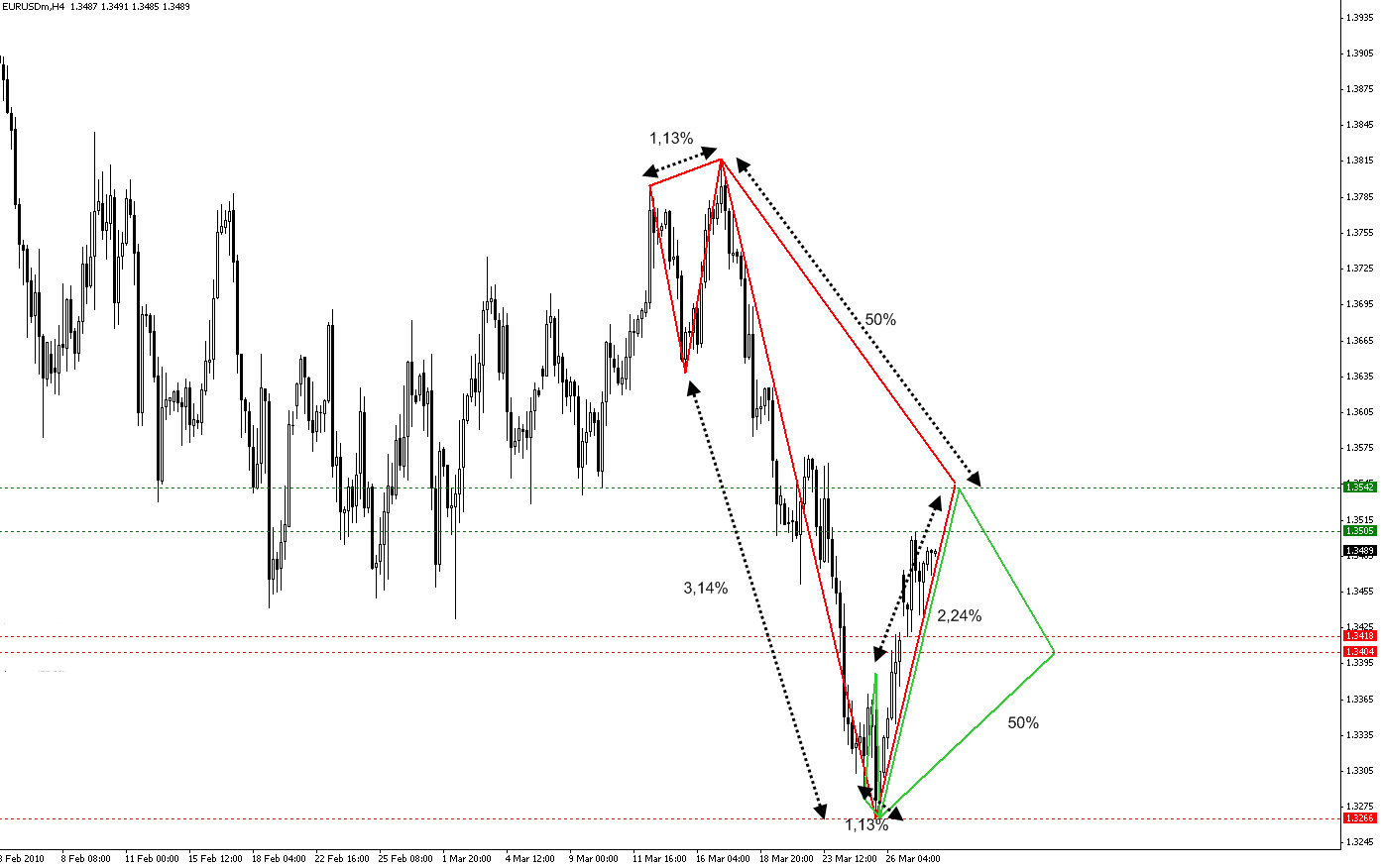 EURUSD Analyse 13/04/2010 en H4 a 5.00 am Paris, Bxl