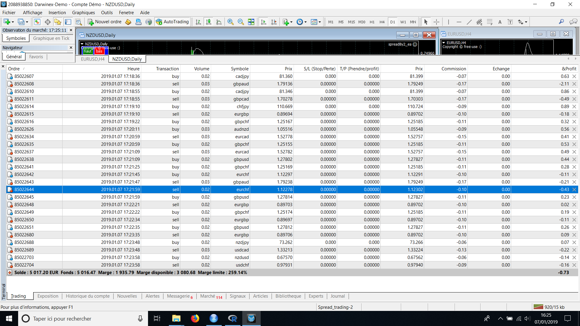 C'est seulement du spread sur 2 paires (voir le screenshot et les horaires des trades), et lorsqu'il n'y a qu'une paire, c'est que le prog à créé le synthétique (Ex: si long eurusd et short eurjpy, alors le prog rentre short usdjpy).