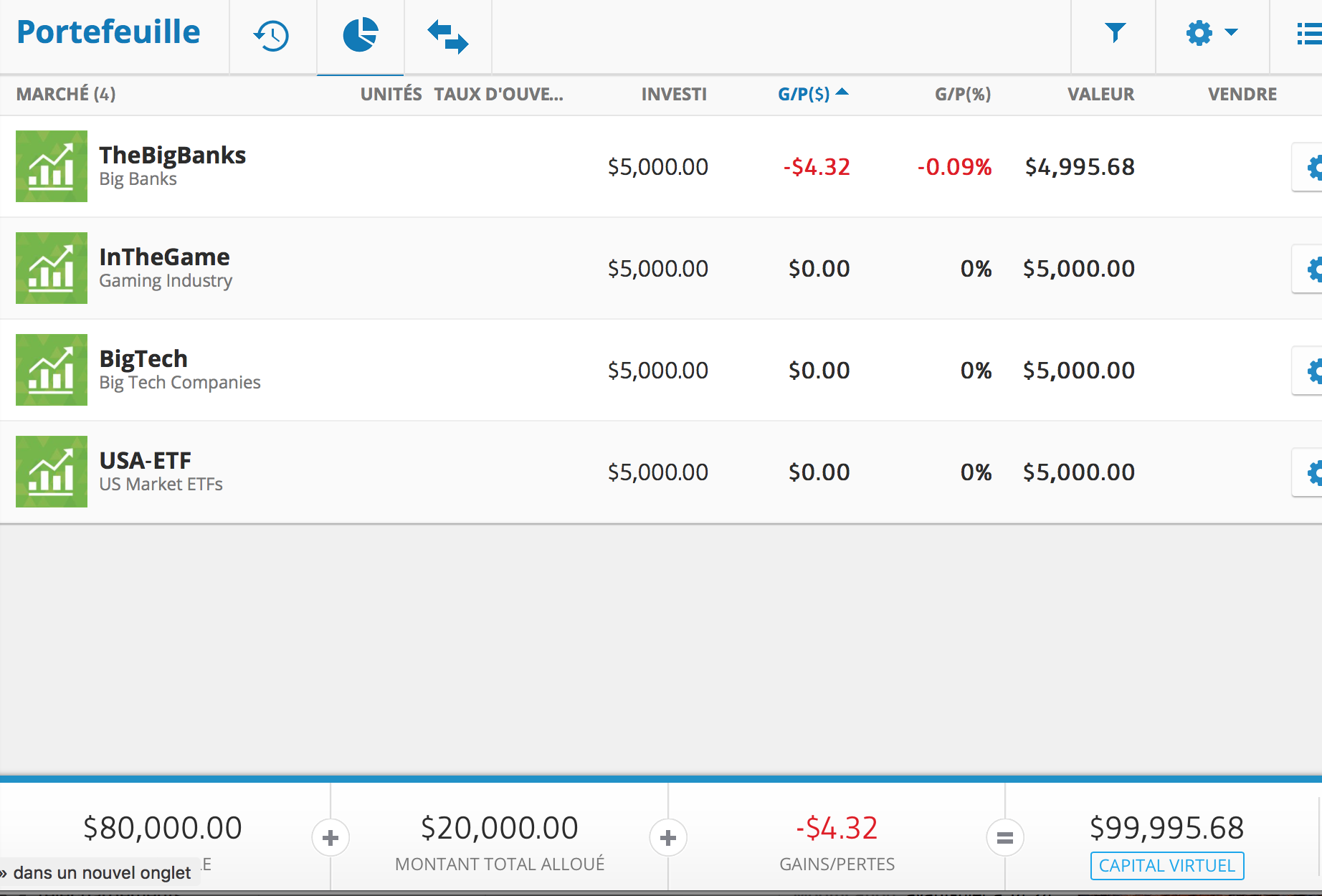 Moi aussi tenter par les CopyFunds d'eToro je lance un test sur un compte virtuel...