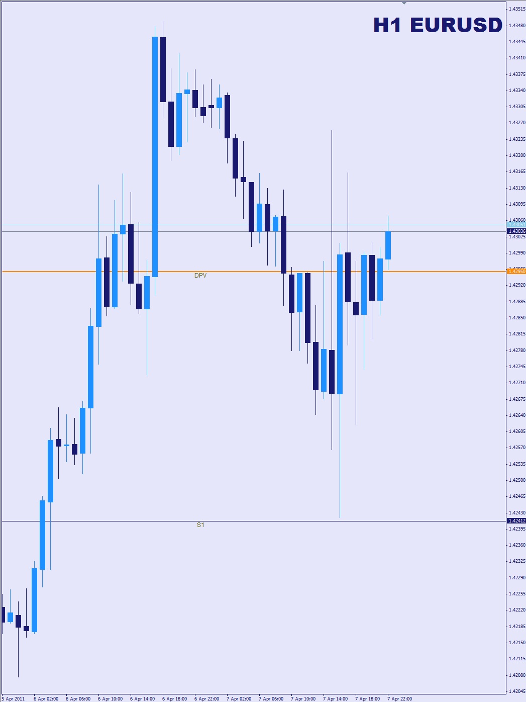 La parité EUR/USD a feinté hier une cassure baissière de 1,43 pour effectuer un plus bas sur 1,4250 en extension.