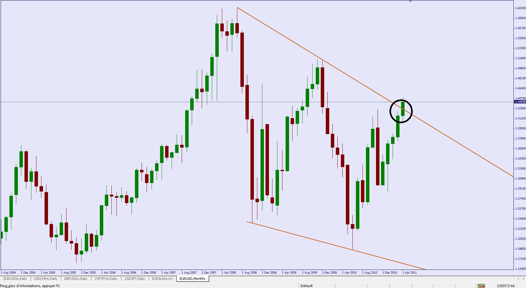 Pour moi, d'après la plateforme MT4 de chez GoMarkets, on a cassé à la hausse cette trend line! Mais quel est le broker qui fournit les bons cours?