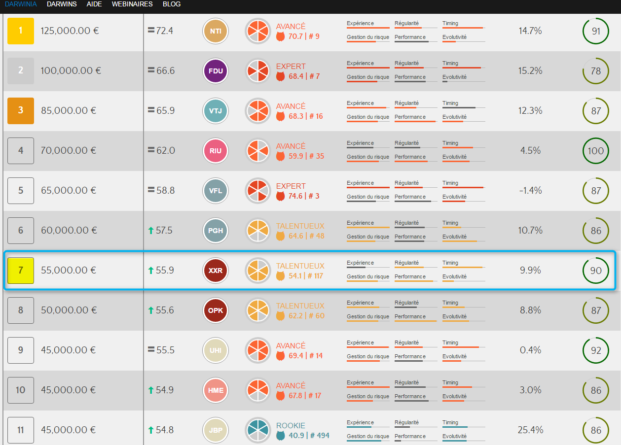 Donc si le trader fait un gain de 10 pips, il est fort probable que l'investisseur aura un gain de 10.1 pips sur SON Darwin, donc il aura bénéficié de fait d'un slippage positif lors de la réplication.