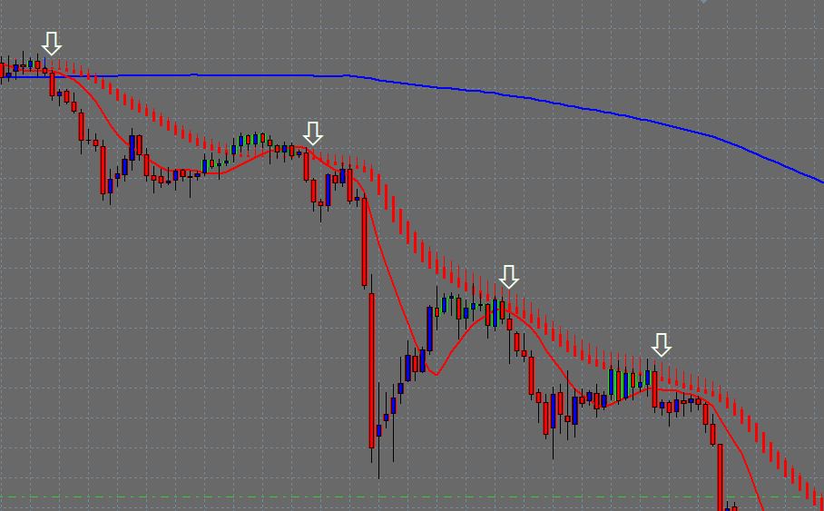 donc les conditions d ' entrés "sell":prix inferieure à MM 200 simple à clôture,l'HAS rouge ,obo trend bar en sensytivité 1 rouge et enfin la valeur de la MM10 weighted close inférieure la valeur de la bougie précédente.