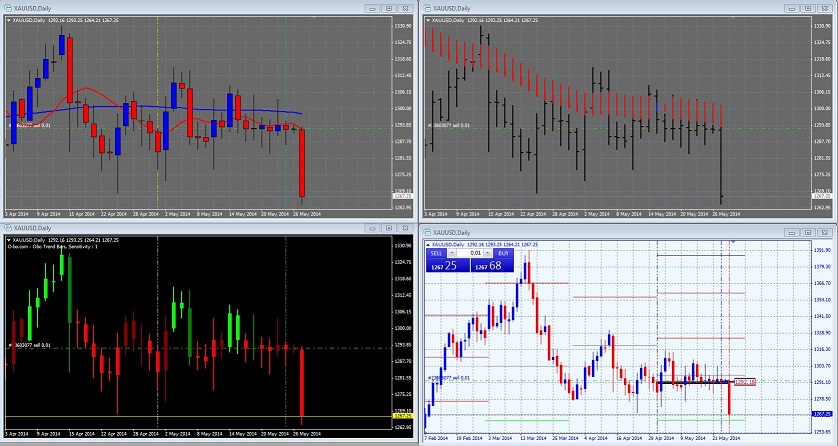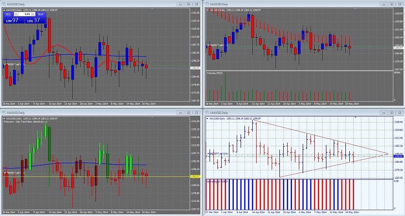 et comme de part hasard la zone de prix des 1270$ nous avons 4 semaines du 19.01.2014 au 09.02.2014 ou ce prix a fait office de support et résistance et encore une autre fois ces derniers jour regardez vos graph en weekly vous verrez la semaine du 20.04.2014 le prix est venue ce poser comme une fleur dessus....comme dirais je sais pas qui "moi je dis ça ,je dit rien....ouch"