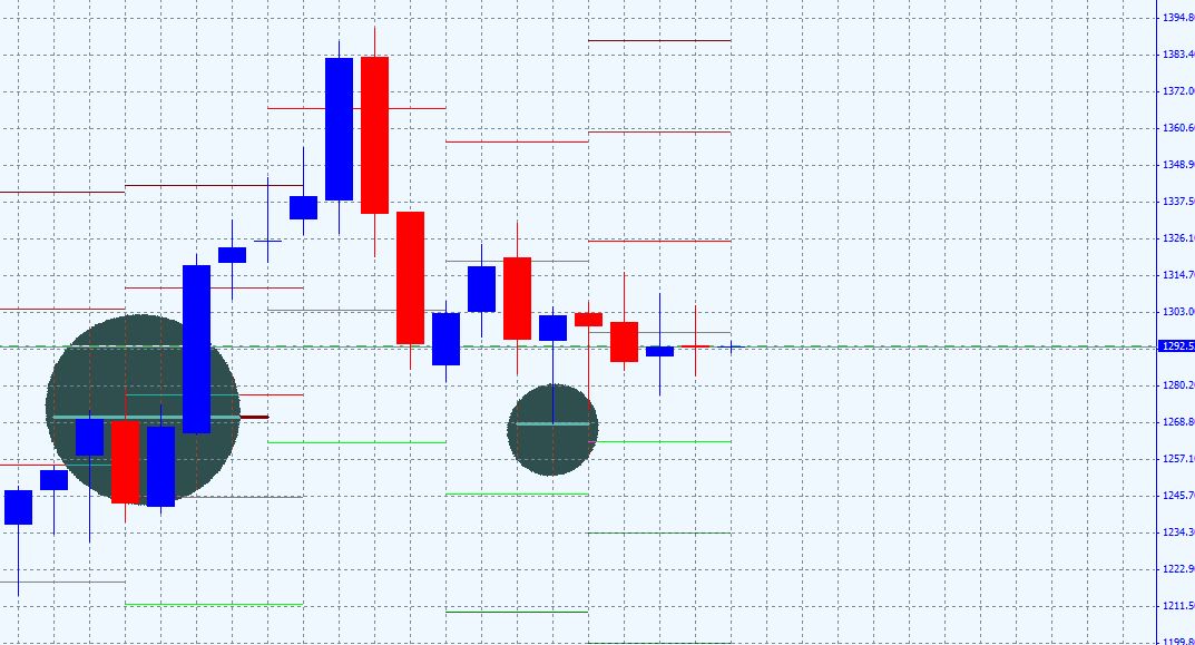 voici les chiffres en imaginant le prix de clôture pour avoir une zone approximative des support de juin j ai donc spéculé la clôture mensuel a 1290 $ l'once .