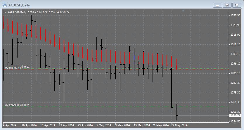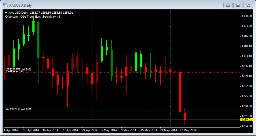 bon j ai posé un nouvel ordre à la vente au prix de 1265 $ et j 'ai posé un stop loss pour protéger ma première position j attend une baisse encore aujourd'hui mais la encore c est une chance sur deux!!