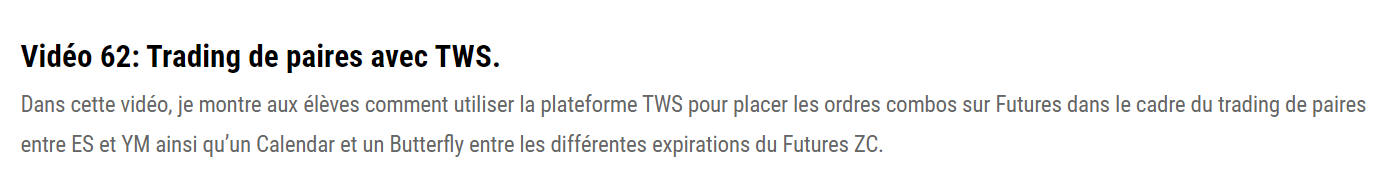 Tiens, dans la dernière vidéo mise en ligne dans notre groupe FB, je montre à deux élèves comment utiliser TWS pour faire du trading de paires sur Futures.