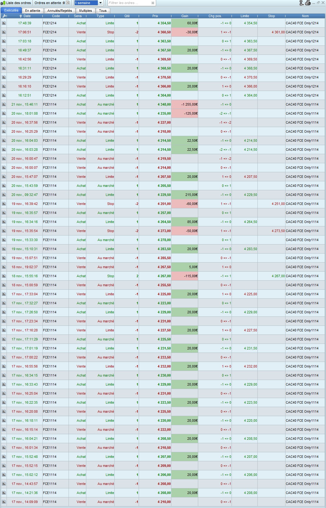 Voici les résultats de la semaine dernière et de ce premier jour de décembre: Je vais ouvrir un compte CFD en parallèle du compte future pour faire de l'intraday à 1€ du point.