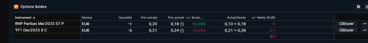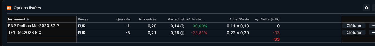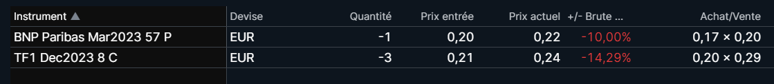 Capture écran de mes options ce matin , BNP stratégie cash secured put ,TF1 stratégie covered call ( compte réel)