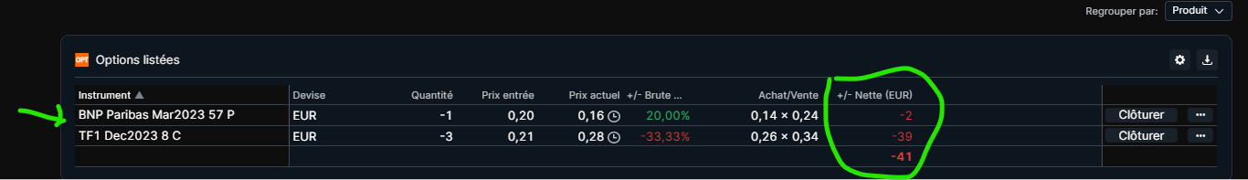 Mais si tu conserves ton Put jusqu'à expiration et assignation, alors la perte latente que tu avais sur ton Put va basculer sur la position BNP qui va être ouverte suite à l'assignation de ton Put.