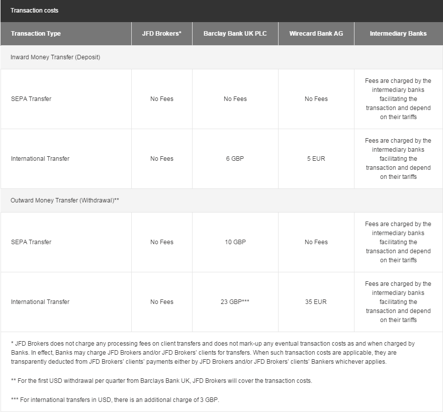 J'ai retiré une fois l'équivalement euro de 200 chf et j'ai recu sur mon compte un peu moins de 150 chf. J'ai écris à JFD pour savoir s'il n'avait pas fait une erreur et eux m'ont répondu que non avec un justificatif de leur ordre comptable. Ils m'ont de demander à ma banque s'il n'y avait pas de frais "cachés". Je suis allé voir ma banque (UBS) et eux m'ont montré qu'ils avaient reçu un virement d'un peu moins de 150 chf. C'est donc bel et bien (sauf si JFD m'a menti) Wirecardbank qui se sucre comme un bon gros voleur sur chaque virement. Je vais donc demandé à JFD si c'est possible de transférer mon argent sur la banque anglaise. JFD devrait soit mettre les choses au clair avec Wirecardbank, soit vite changer de banque. De tels frais pour un simple virement sont inacceptables!!!