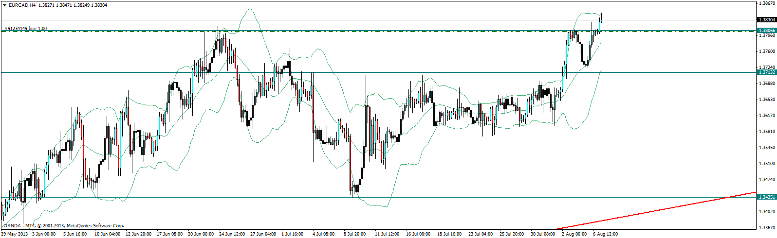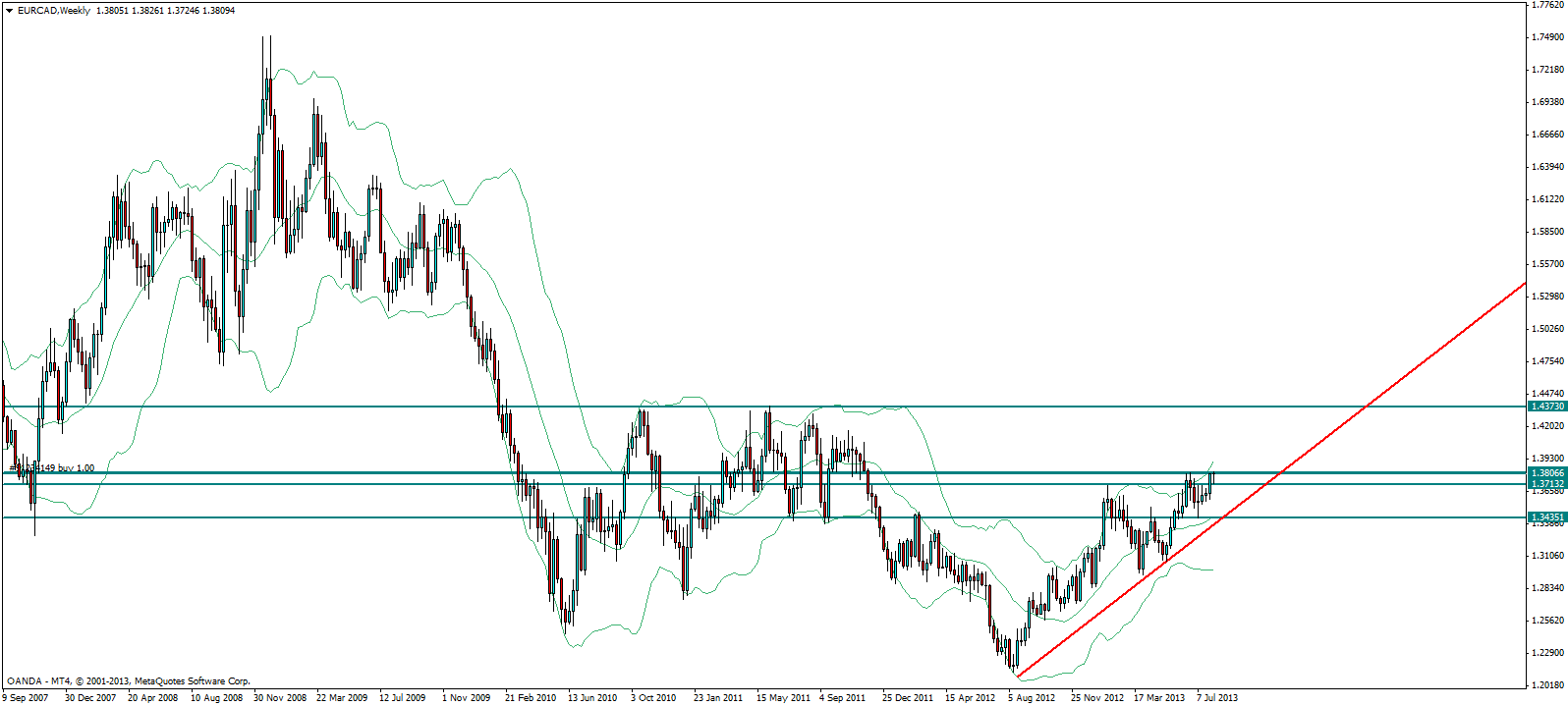 La paire EUR/CAD évolue en données hebdomadaires dans une configuration haussière matérialisée par un plus bas de plus en plus hauts et surtout une résistance clé à 1.3800 en passe d'être franchie à la hausse.