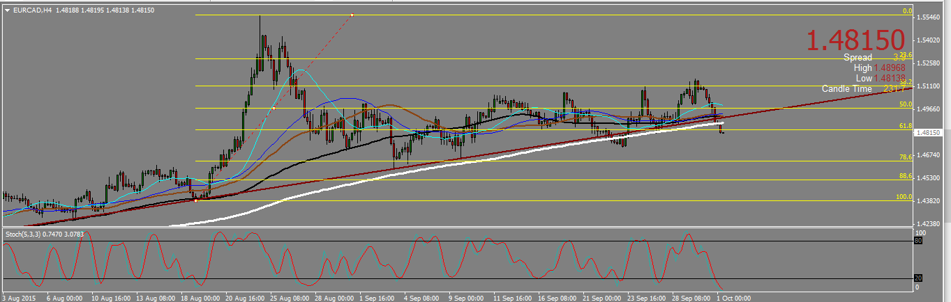 EURCAD H4 (30 sEPTEMBRE 2015 ): Retest du support vers 1,5?