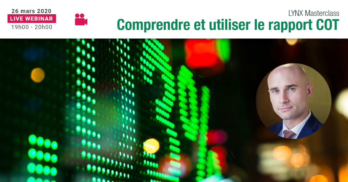 Comprendre puis utiliser le rapport « Commitment Of Traders » Dans ce webinaire, nous allons présenter le rapport « Commitment Of Traders » du régulateur des contrats futures aux Etats-Unis (CFTC), qui dévoile chaque semaine les positions de trading de plusieurs catégories de traders et sur toutes les classes d’actifs. Nous verrons comment accéder au positionnement des institutionnels sur Bitcoin, Or, Forex et indices boursiers.