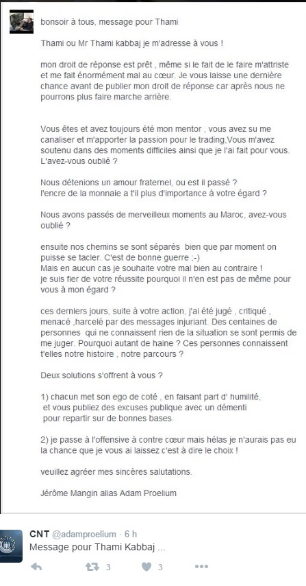 Dans un souci de transparence ,Je vous fait partager la video de thami kabbaj au sujet de jerome mangin, adam proelium . Elle permet de mieux comprendre le parcours de trader perdant de jerome mangin