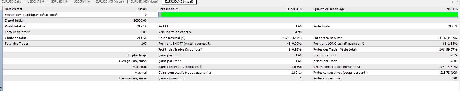 Tu n'as pas les mêmes résultats? Je vais tester sur une autre plateforme, mais de toute façon ce qui nous intéresse ici ce n'est pas le résultat du backtest mais le nombre moyen de gains et de pertes.
