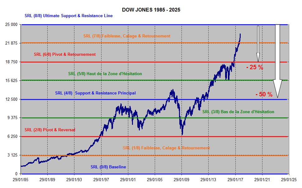 Quand je ne fais pas des divisions par 8 d'intervalles de prix , il m'arrive de tirer des diagonales (en couleur)
