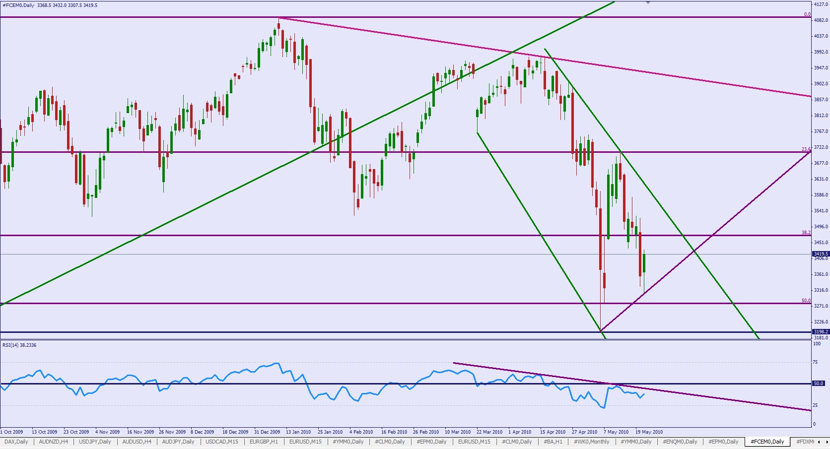 Actuellement nous avons donc encore largement accéléré à la baisse pour atteindre 3325.5 points pour le future CAC 40 et -12% lors des 5 dernières séances.