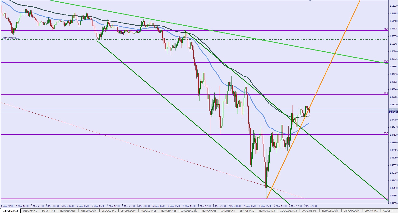 Voila ce que je dessine pour ma part sur le graphique GBP / USD en 5 minutes: