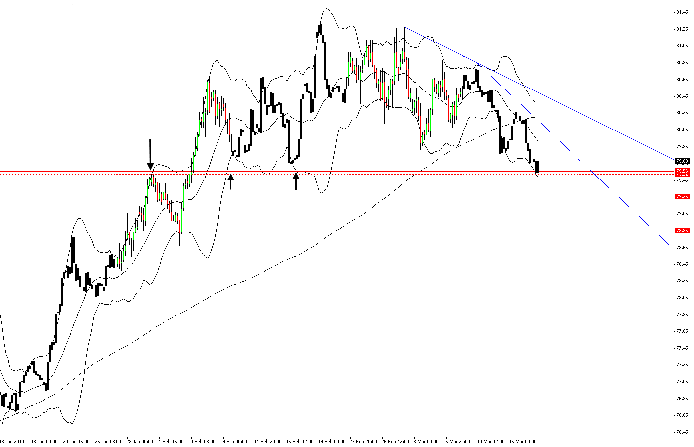 Toutes les Blue Chips chutent, que ce soit les valeurs pétrolières, plombées par la chute du baril de light sweet crude oil, côté sur le NYMEx, sous les 49 $, alors que la consommation de pétrole diminue, ou les valeurs refuges des secteurs pharmaceutiques, alimentaires... La récession se confirme de jours en jours, les chiffres risquent d'êtres terriblement décevants... C'est dans ce contexte que le Dollar US (USD) remonte la pente. L'euro côte toujours aux alentours des 1.25 $. Je me tourne vers le Franc Suisse (CHF). Cette monnaie est traditionnellement une valeur refuge, la Suisse étant un petit havre de paix au milieu des Alpes. Le dollar remonte fortement par rapport au franc, 1 USD équivalant à 1.22 CHF, alors qu'en février le Franc Suisse avait atteint la parité!