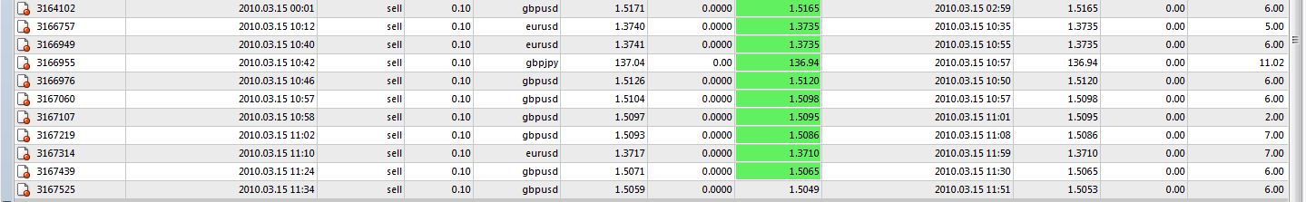 En faite avec un objectif de 10 â 15 pips c presque impossible d'avoir un trade inverse en 60 trade j'ai eu 1 seul trade de -192$ qui et revenue en +11$ qui a taper mon TP.